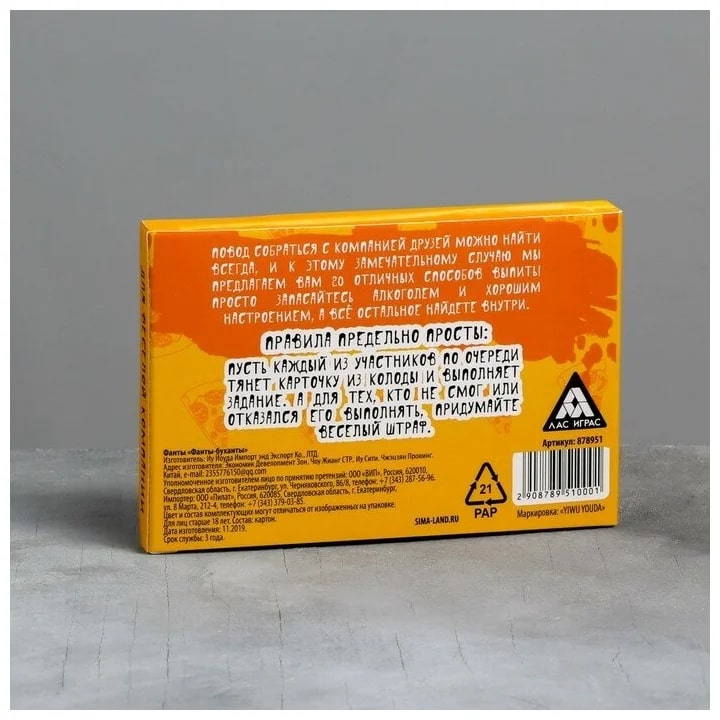 Купить игра для компании "фанты буханты" 20 карт от 100 руб. с доставкой до пункта выдачи в Уржуме. Интернет магазин ДекаМаркет. Оплата при получении.